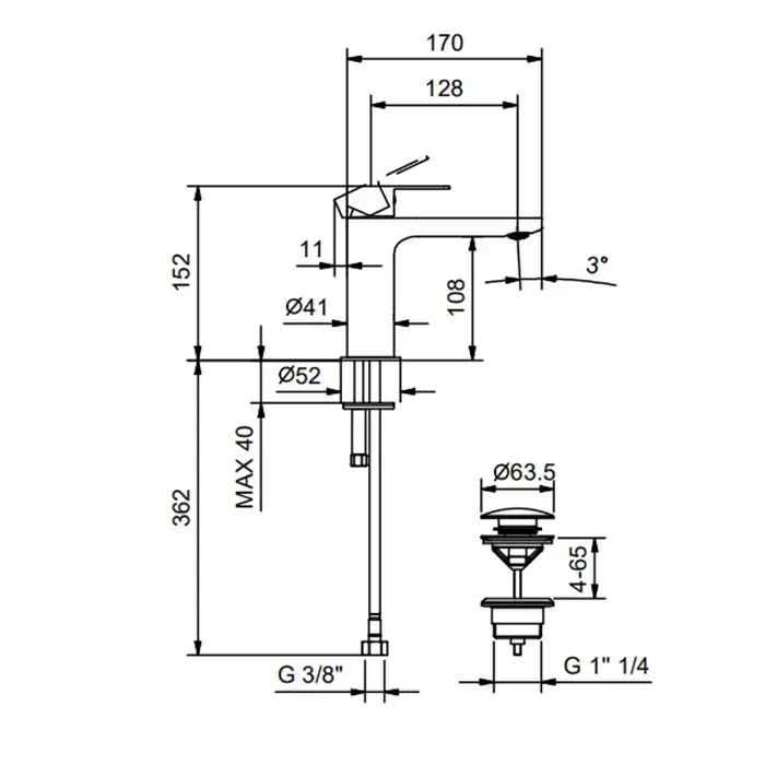 Fantini Myo Смеситель для раковины, встраиваемый, цвет: черный матовый