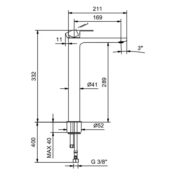 Fantini Myo Смеситель для раковины на 1 отверстие, высокий излив , цвет: хром