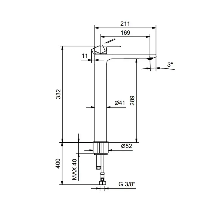 Fantini Myo Смеситель для раковины на 1 отверстие, высокий излив , цвет: хром