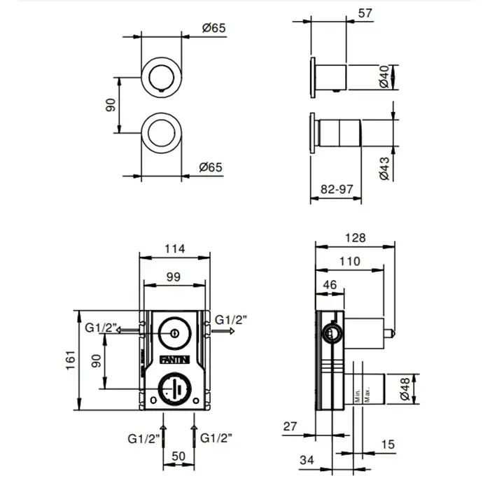 Fantini Nice Встраиваемый смеситель для душа на 2 потока, цвет хром (внешняя часть)