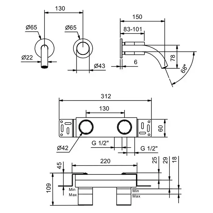 Fantini Nice Смеситель для раковины, настенный, излив: 150 мм, цвет: хром