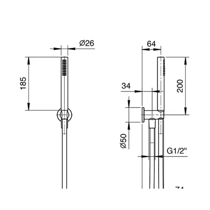Fantini Milano Душевой набор: вывод воды 1/2", шланг 150 см, ручная лейка FIT, держатель для лейки, цвет: матовая натуральная сталь