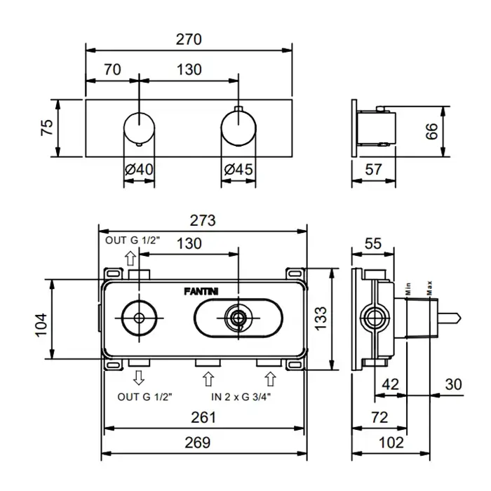 Fantini NOSTROMO Термостат. встраив. смес-ль для душа, 2 потребителя, 3/4'' наруж. часть, цвет: черный матов (СПЕЦцена с Нашего склада!)