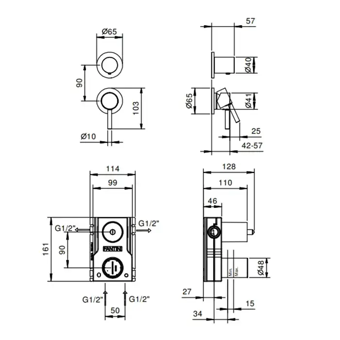 Fantini Venezia Внутренняя часть смесителя для душа, на 1 источник