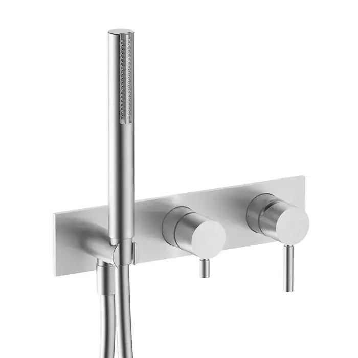 Fantini Nostromo Смеситель для душа, встраиваемый, на 2 источника, с ручн душем, (наружняя часть), цвет: нержавеющая сталь