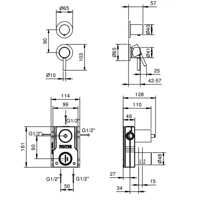 Fantini NOSTROMO Встраиваемый Смесители для душа наружная часть, цвет: черный матовый
