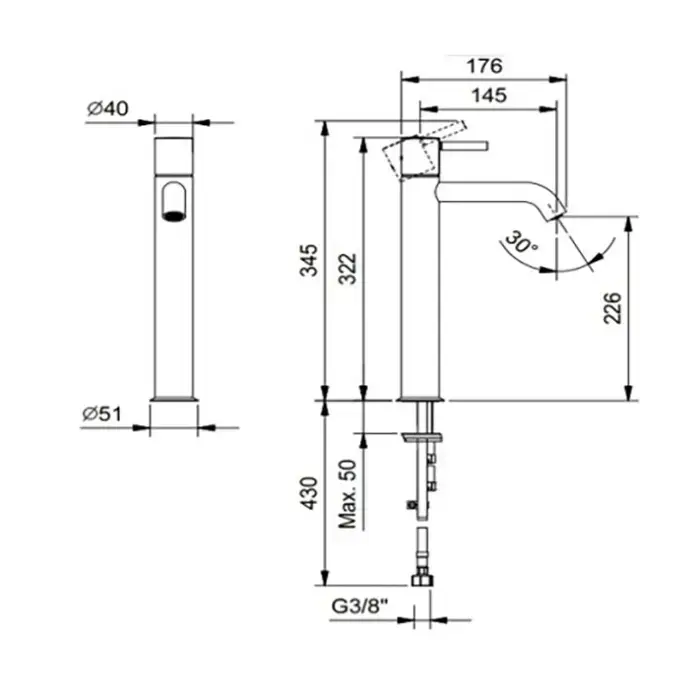 Fantini Nostromo Смеситель для раковины, 1 отв., без донного клапана, излив 145мм, цвет: черный матовый
