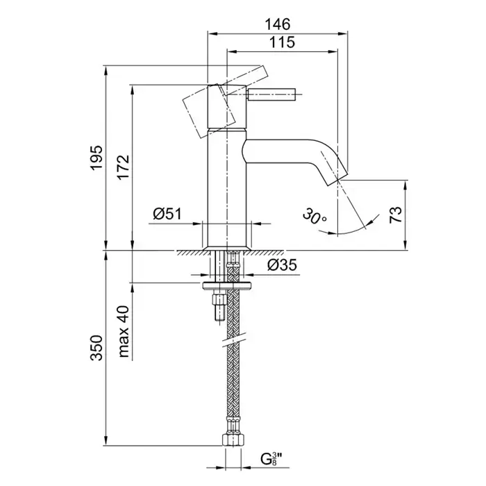 Fantini Nostromo Смеситель для раковины, 1 отв., без донного клапана, излив 115мм, цвет: нержавеющая сталь
