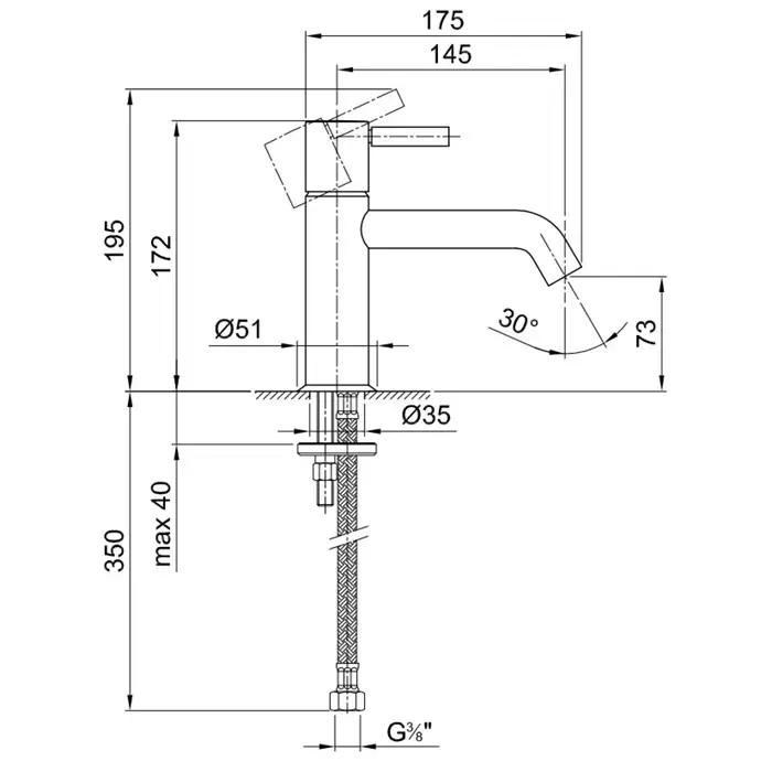 Fantini Nostromo Смеситель для раковины, 1 отв., без донного клапана, излив 145мм, цвет: хром