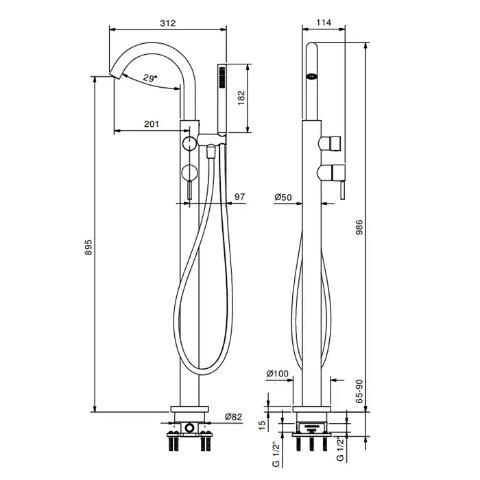 Fantini Nostromo Смеситель для ванны, напольный, с ручным душем и шлангом 1500 мм., внешняя часть, цвет: черный матовый
