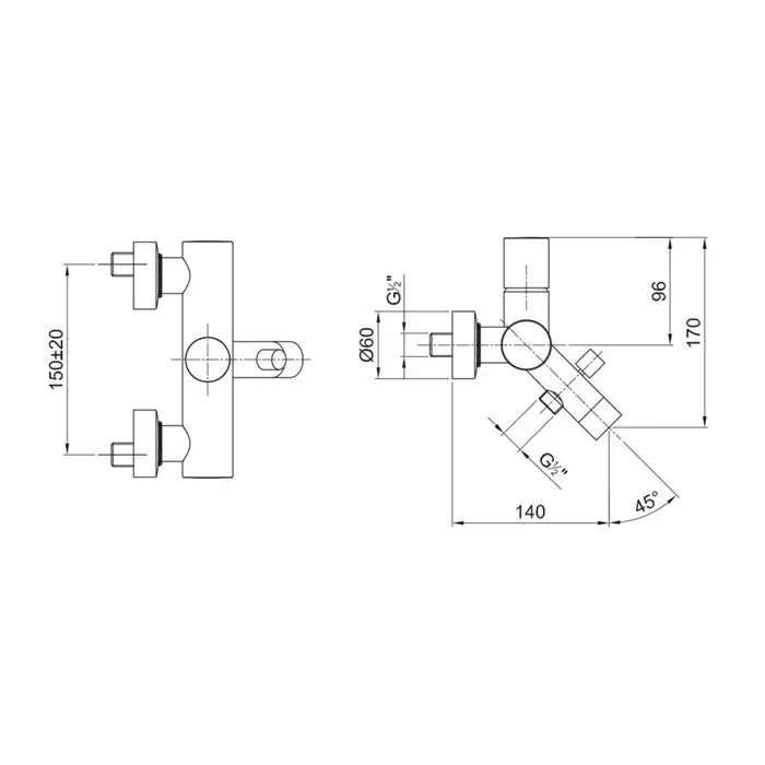 Fantini Nostromo Смеситель для ванны, настенный, с ручн душем, излив 140мм, цвет: хром