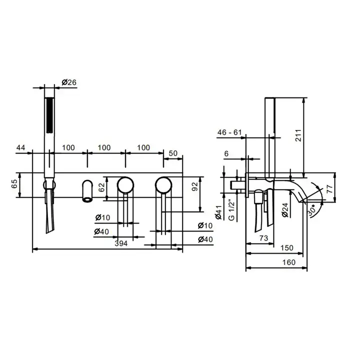 Fantini Nostromo Смеситель для ванны, встраиваемый, с ручн душем, излив 150мм, (наружняя часть), цвет: хром