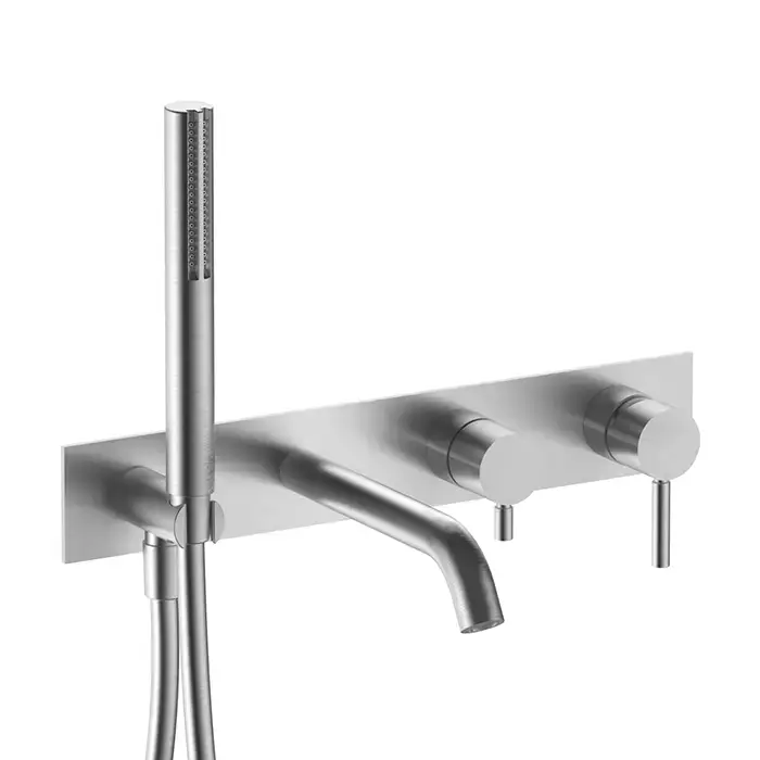 Fantini Nostromo Смеситель для ванны, встраиваемый, с ручн душем, излив 200мм, (наружняя часть), цвет: нержавеющая сталь