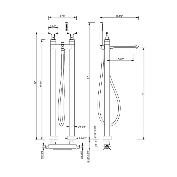Fantini Sailing Смеситель для ванны напольный,перекл на 2 потока, ручная лейка, внешняя часть, цвет: Matt Gun Metal PVD