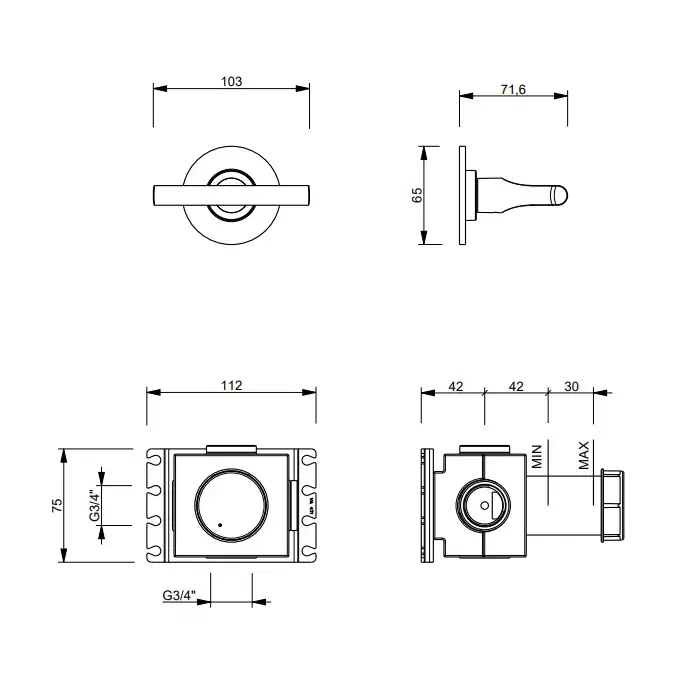 Fantini Sailing Запорный вентиль, настенный, встраиваемый, цвет: Matt Gun Metal PVD