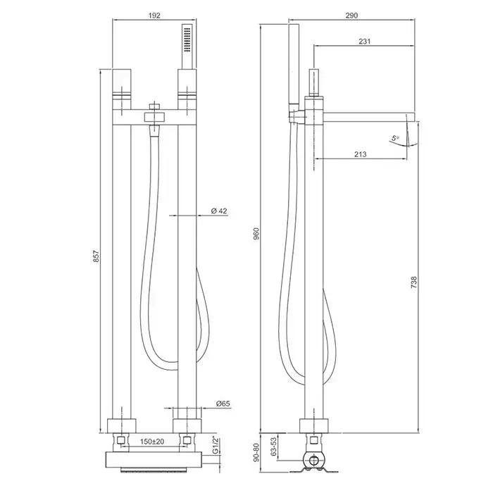 Fantini Venezia In Смеситель для ванны, напольный, с ручн душем, излив 215мм, (наружняя часть), цвет: хром