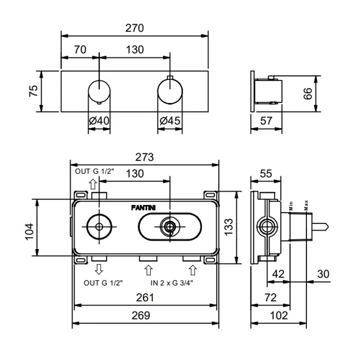 Fantini Venezia Смеситель для душа, термостатический, встраиваемый, 3/4'' наружная часть цвет: Matt British Gold PVD