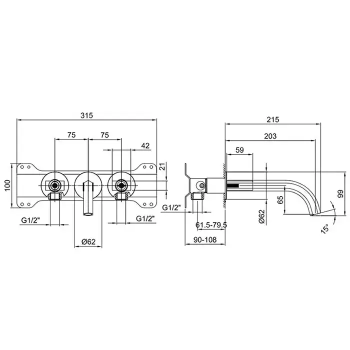 Fantini Venezia Смеситель для раковины, встраиваемый, на 3 отв., без донного клапана, излив 200мм, (наружняя часть), цвет: хром