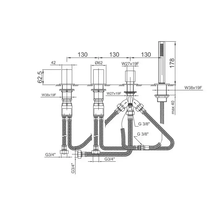 Fantini Venezia Смеситель для ванны, набортный, 4 отв., без излива, цвет: Nickel PVD