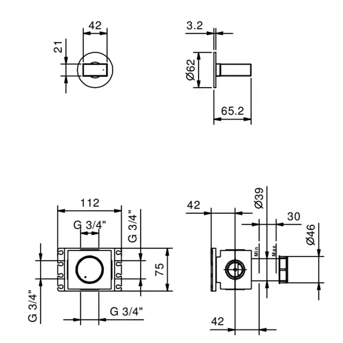 Fantini Внутренняя часть смесителя на 1 отв. с настенным управлением, 1/2''