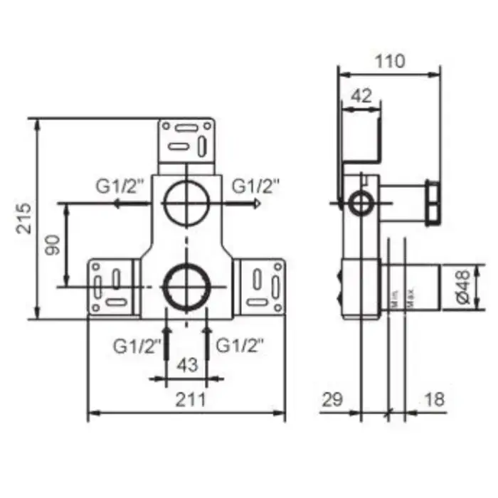 Fantini Внутренняя часть смесителя для душа, переключатель на 2 источника, 1/2"