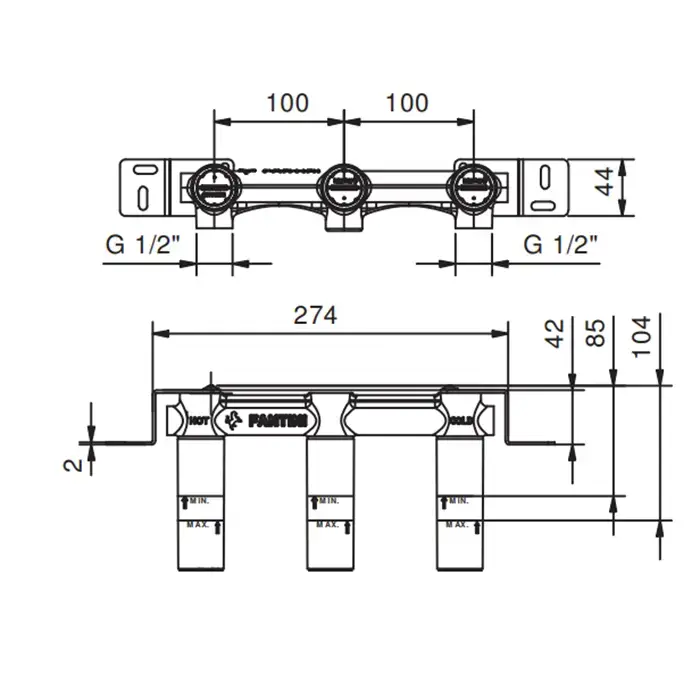 Fantini Внутренняя часть смесителя для раковины на 3 отв, 1/2"