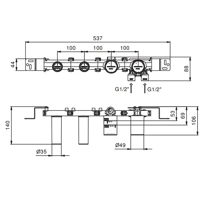 Fantini Внутренняя часть смесителя для ванны, переключатель на 2 источника, 1/2"