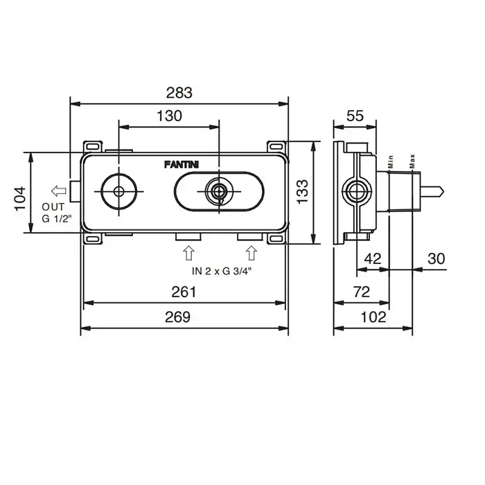 Fantini Внутренняя часть термостатического смесителя для душа, 1 источник, 3/4"