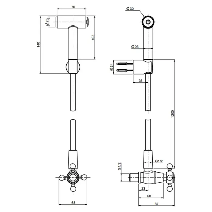 Fima Carlo Frattini Collettività Гигиенический душ, настенный, со шлангом 120см., с угловым вентелем, цвет: черный матовый