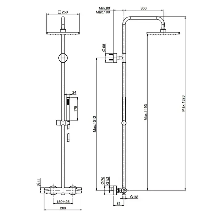 Fima Carlo Frattini Colonne doccia Душевая стойка, верхний душ 25х25см., с термостатическим смесителем, держателем и ручным душем, цвет: хром