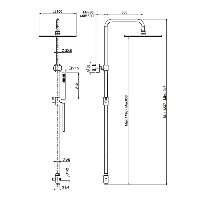 Fima Carlo Frattini Colonne doccia Душевая стойка, верхний душ 25x25см., с держателем и ручным душем, цвет: черный матовый
