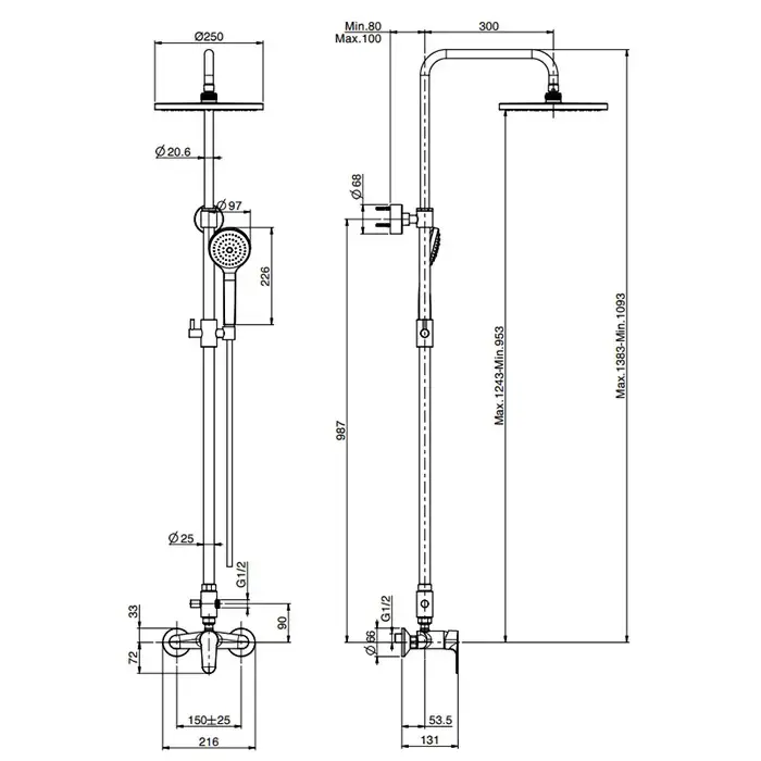 Fima Carlo Frattini Colonne doccia Душевая стойка, верхний душ 25см., со смесителем, держателем и ручным душем, цвет: хром