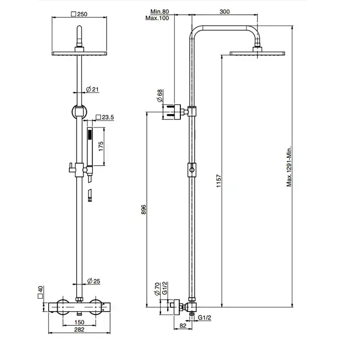 Fima Carlo Frattini Colonne doccia Душевая стойка, верхний душ 25х25см., с термостатическим смесителем, держателем и ручным душем, цвет: хром