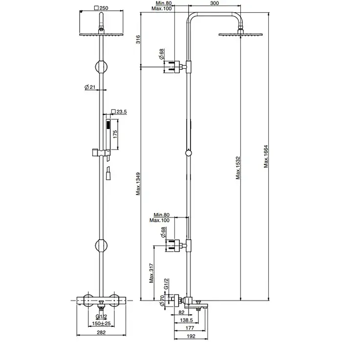 Fima Carlo Frattini Colonne doccia Душевая стойка, верхний душ 25х25см., с термостат смесителем, держателем и ручным душем, цвет: чёрный матовый