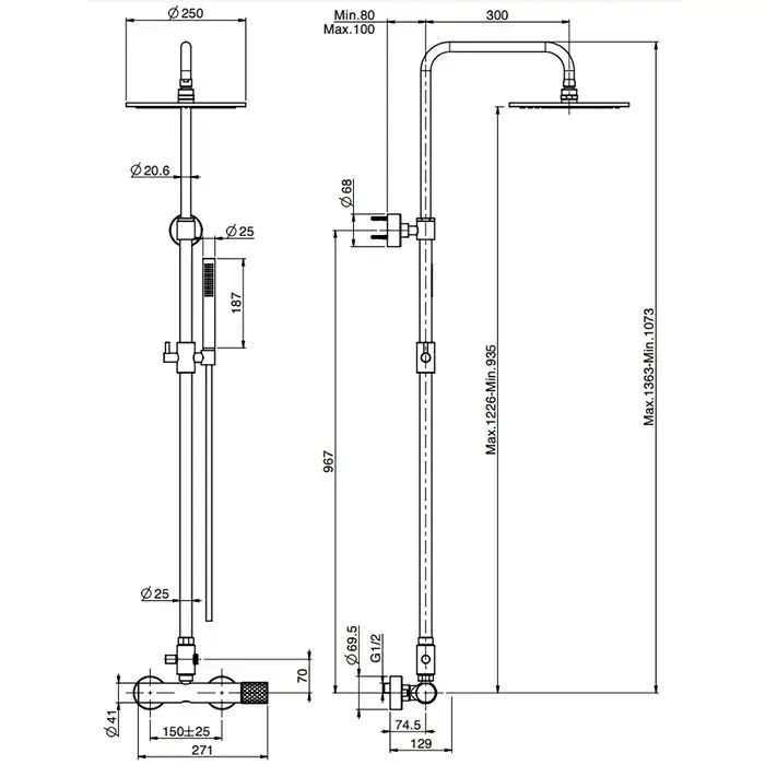 Fima Carlo Frattini Colonne doccia Душевая стойка, верхний душ 25см., со смесителем, с держателем и ручным душем, цвет: чёрный матовый