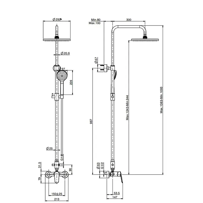 Fima Carlo Frattini Colonne doccia Душевая стойка, верхний душ 25см., со смесителем, с держателем и ручным душем, цвет: чёрный матовый