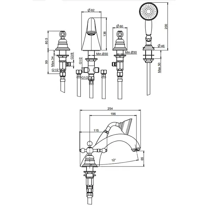Fima Carlo Frattini Epoque Смеситель на борт ванны, на 4 отв., сручным душем, цвет: золото