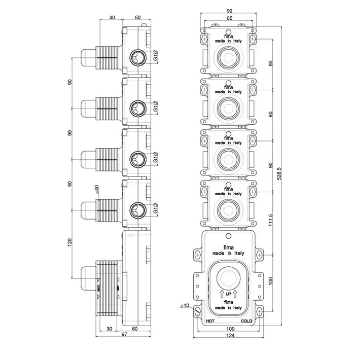 Fima Carlo Frattini Fimathermbox F2464 Внутренняя часть встраиваемого термостатического смесителя для душа, 4 источника