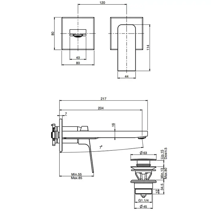 Fima Carlo Frattini Fit Cмеситель для раковины, встраиваемый, излив: 14.9см., с донным клапаном, цвет: хром
