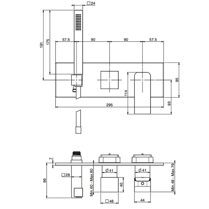 Fima Carlo Frattini Fit Смеситель на борт ванны, на 4 отв., с ручным душем, цвет: хром