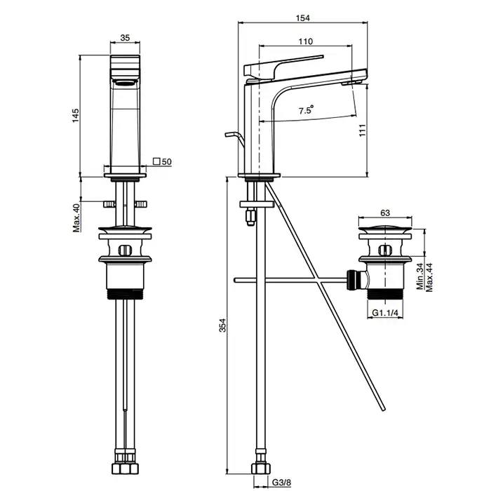 Fima Carlo Frattini Fit Cмеситель для раковины, встраиваемый, излив: 15.4см., с донным клапаном, цвет: хром