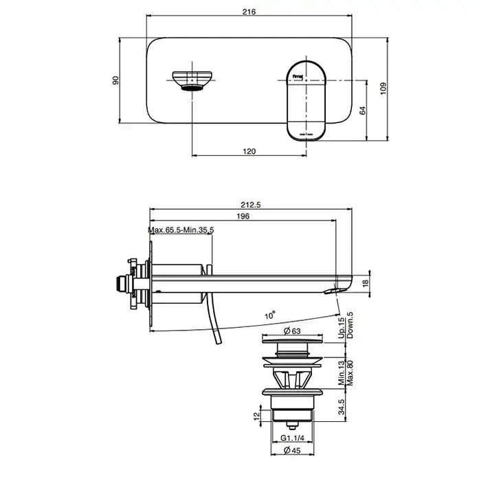 Fima Carlo Frattini Flo Cмеситель для раковины, встраиваемый, излив: 15.5см., цвет: хром