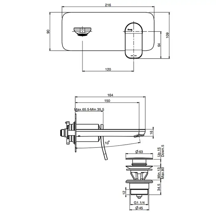 Fima Carlo Frattini Flo Cмеситель для раковины, встраиваемый, излив: 15.5см., цвет: хром