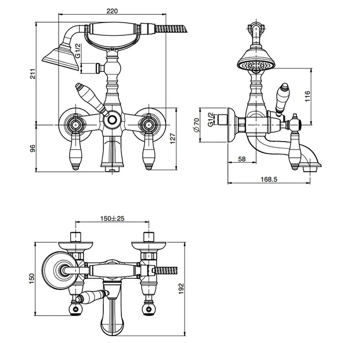 Fima Carlo Frattini Herend Смеситель для ванны, настенный, с ручным душем., черные ручки, цвет: золото