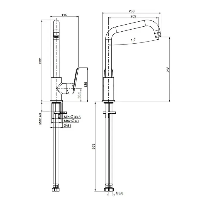 Fima Carlo Frattini Kitchen Смеситель для кухни, на 1 отв., Mast, цвет: хром