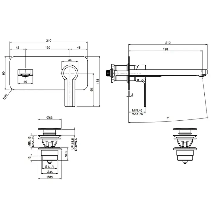 Fima Carlo Frattini Mast Cмеситель для раковины, встраиваемый, излив: 19.9см., цвет: золото