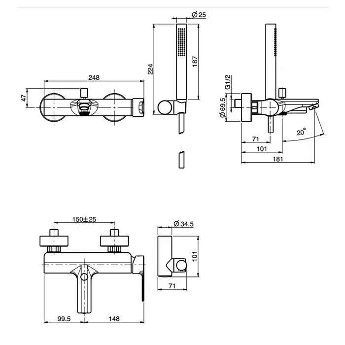 Fima Carlo Frattini Mast Смеситель для душа внешнего монтажа с душевым компле ктом