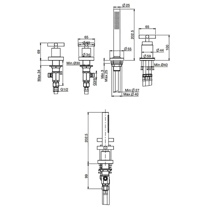 Carlo Frattini Mast Смеситель для душа, встраиваемый, с переключателем на 2/3 источника, без внутр. части, цвет: хром