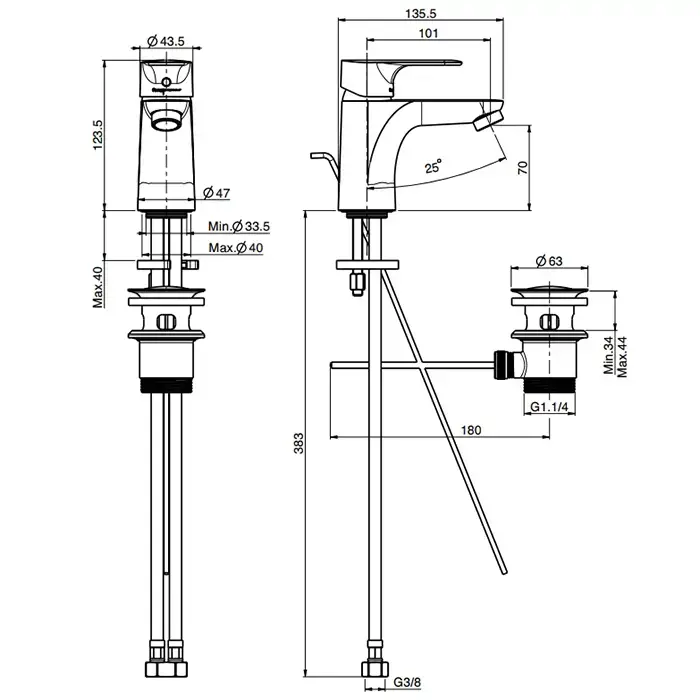 Fima Carlo Frattini Serie 22 Cмеситель для раковины, на 1 отв., с донным клапаном, цвет: хром