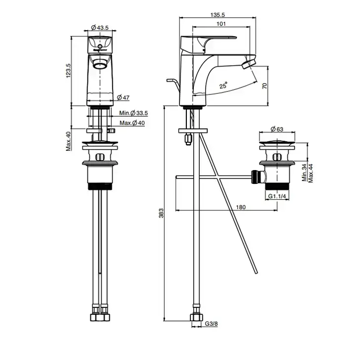 Fima Carlo Frattini Serie 4 Смеситель для биде, на 1 отв., с донным клапаном, цвет: хром